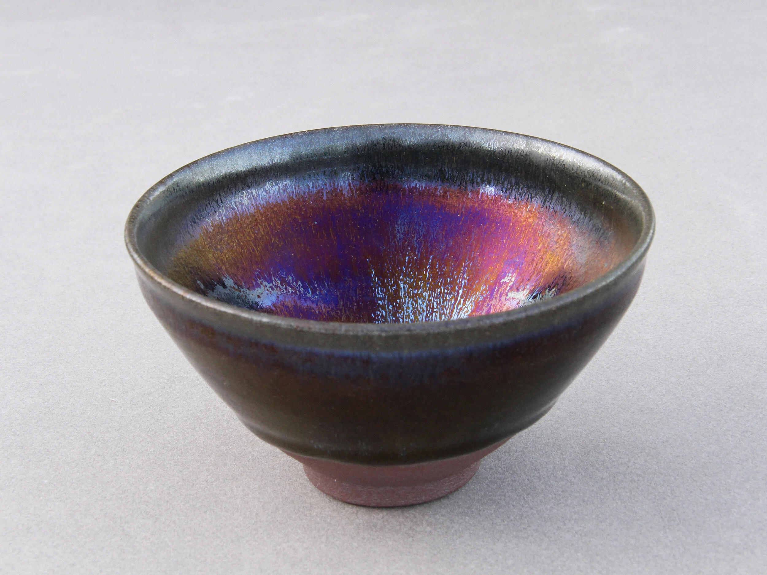For his Jian pieces, Girel cites his Song Dynasty predecessors as a major influence, but also draws a certain animus from nature. The blue hues of cooling lava from an erupting volcano in Africa inspired the addition of water into his glazes and a temperature adjustment that is in part responsible for the signature iridescence of his pieces.