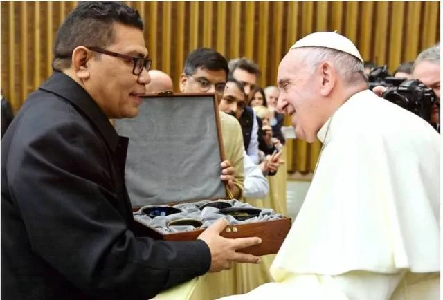 梵蒂岡教皇方濟各接受印尼外交部贈送的建盞國禮