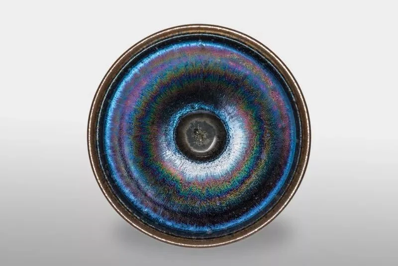陶艺家陈旭,多年来专注于建盏釉色的探索,在彩光釉面的研究上颇有成果。他的七彩佛光盏在此之前也被中国法门寺博物馆、日本大阪市立东洋陶瓷美术馆、大英博物馆永久收藏。