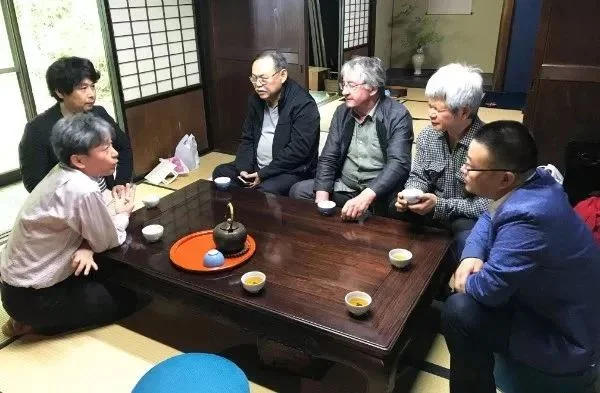 看遍了国宝建盏,再来品饮一盏正宗日本抹茶,这次的日本游学就没有任何遗憾了。茶会安排在曜变之路的长江惣吉的家中。长江惣吉出生于陶瓷世家,在茶艺上也有深入研究。